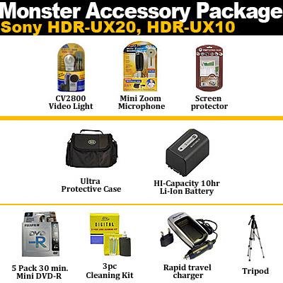 Buy Cheap Essential Accessory Package For Sony HDR-UX20 HDR-UX10 Includes Matching Lenses, Filters, Case, Tripod, 4HR Battery, Charger, Microphone, Video Light + Much More From Here Now!