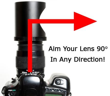 Point your camera one way and shoot the other with this right angle lens attachment. This lens will allow you to shoot directly to the right or left of where your camera appears to be pointing. Built-in rotating barrel to allow height adjustments. People will think you are shooting somewhere else. This lens can be a valuable asset when shooting still pictures at the beach, pool, and other public places.